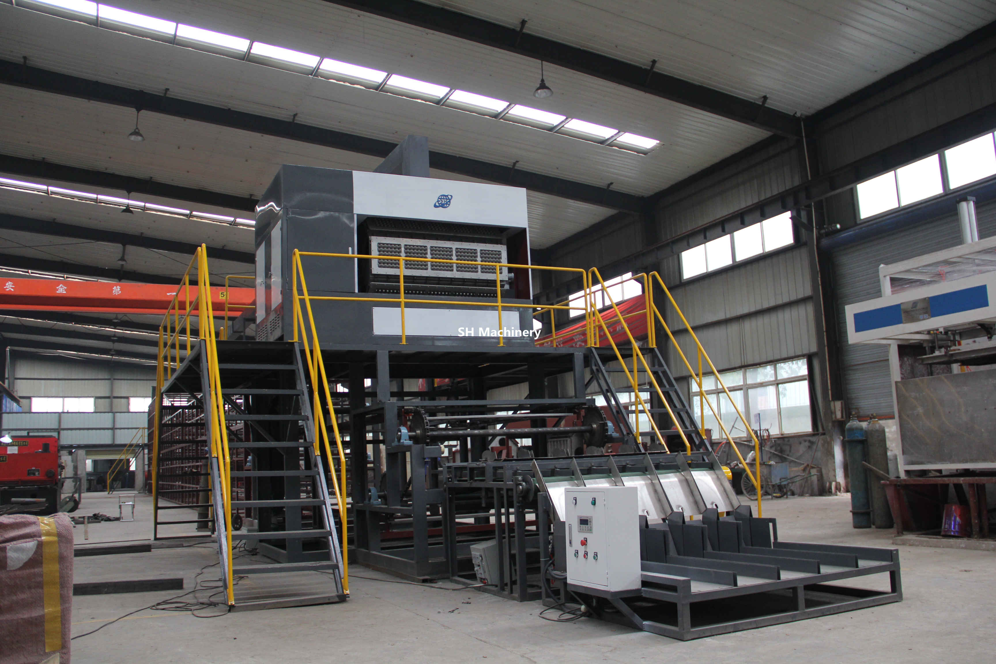 加納6000片每小時蛋托生產(chǎn)線多層金屬烘干線設(shè)備全貌