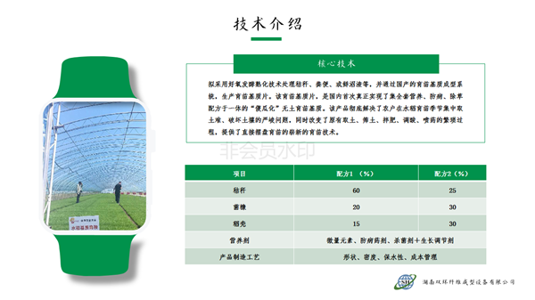 本產(chǎn)品針對(duì)水稻旱育苗大量挖取耕層土,耕層破壞嚴(yán)峻的現(xiàn)實(shí),利用秸稈、蘑菇菌糠、稻殼、沼渣等農(nóng)林廢棄物經(jīng)過工廠化快速熟化,賦予全套的營養(yǎng)、防病、除草配方,制造成新型的嶄新的“無土育苗基質(zhì)”。